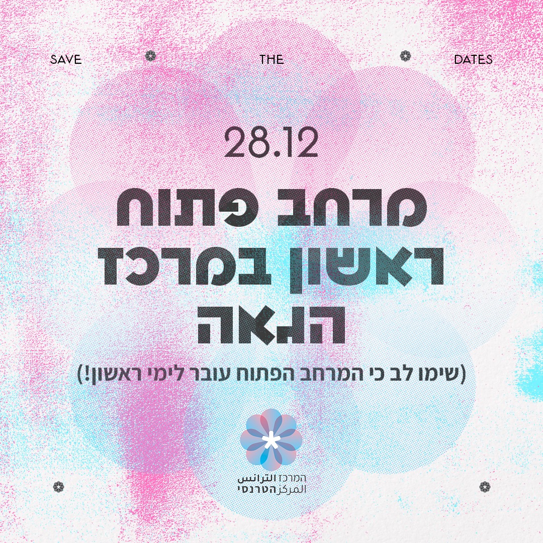 מרחב טרנסי פתוח ראשון במרכז הגאה תל אביבפרטים נוספים בקרוב+ Add to Google Calendar+ iCal / Outlook export 00days 00hours 00minutes 00seconds Dateדצמ 28 2025 More Infoאתר Locationהמרכז הטרנסי مركز الترانسמרדכי אנילביץ' 62, תל אביבWebsite https://www.transcenter.org.il/ Category מרחב פתוח קבוצות ומפגשים Organizer המרכז הטרנסי مركز الترانس Website אתר המרכז הטרנסי مركز الترانس אתרShare this event