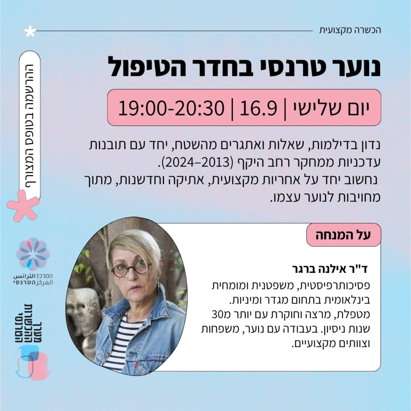 נוער טרנסי בחדר הטיפול – הכשרה מקצועית לא.נשי טיפול