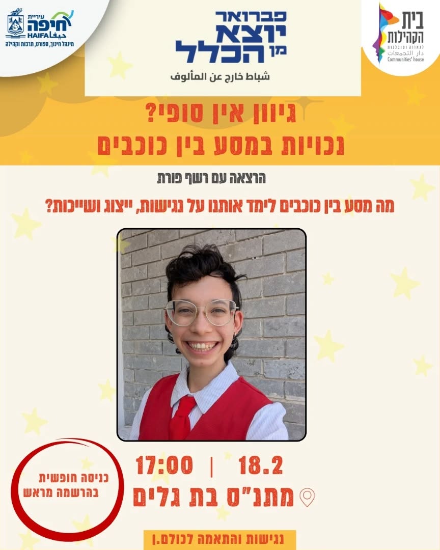 במסגרת “פברואר יוצא מן הכלל” אנחנו מזמינים אתכן.ם להרצאה סופר מסקרנת עם רשף פורת על מה שמסע בין כוכבים לימד אותנו על נגישות, ייצוג ושייכות, איך עולם של עתיד יכול לשקף את המציאות שלנו כאן ועכשיו.