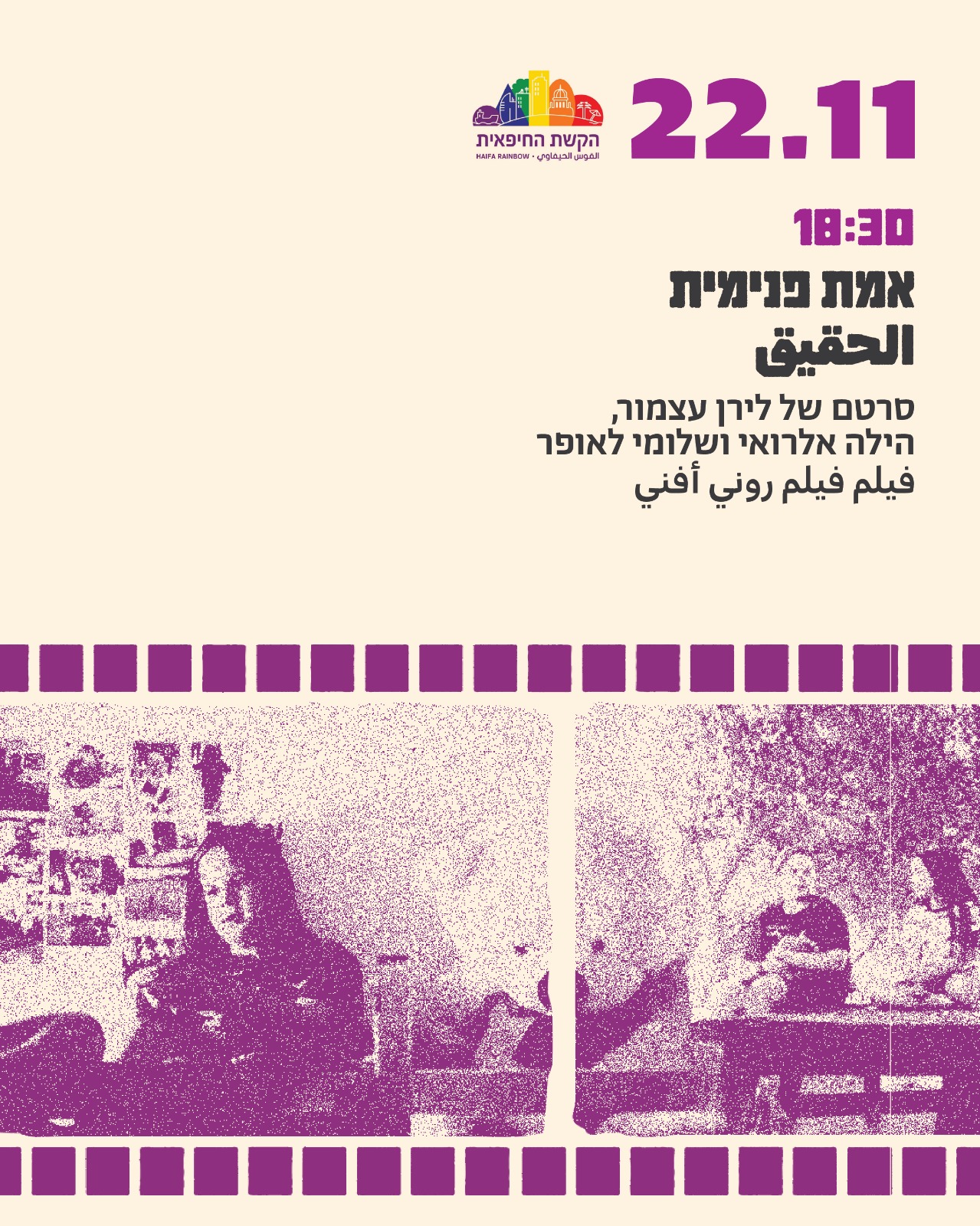 🎞️ הקשת החיפאית משתתפת בפסטיבל הקולנוע העממי בחיפה ומזמינה להקרנת הסרט "אמת פנימית" ושיחה עם היוצר שלומי לאופר 🎞️