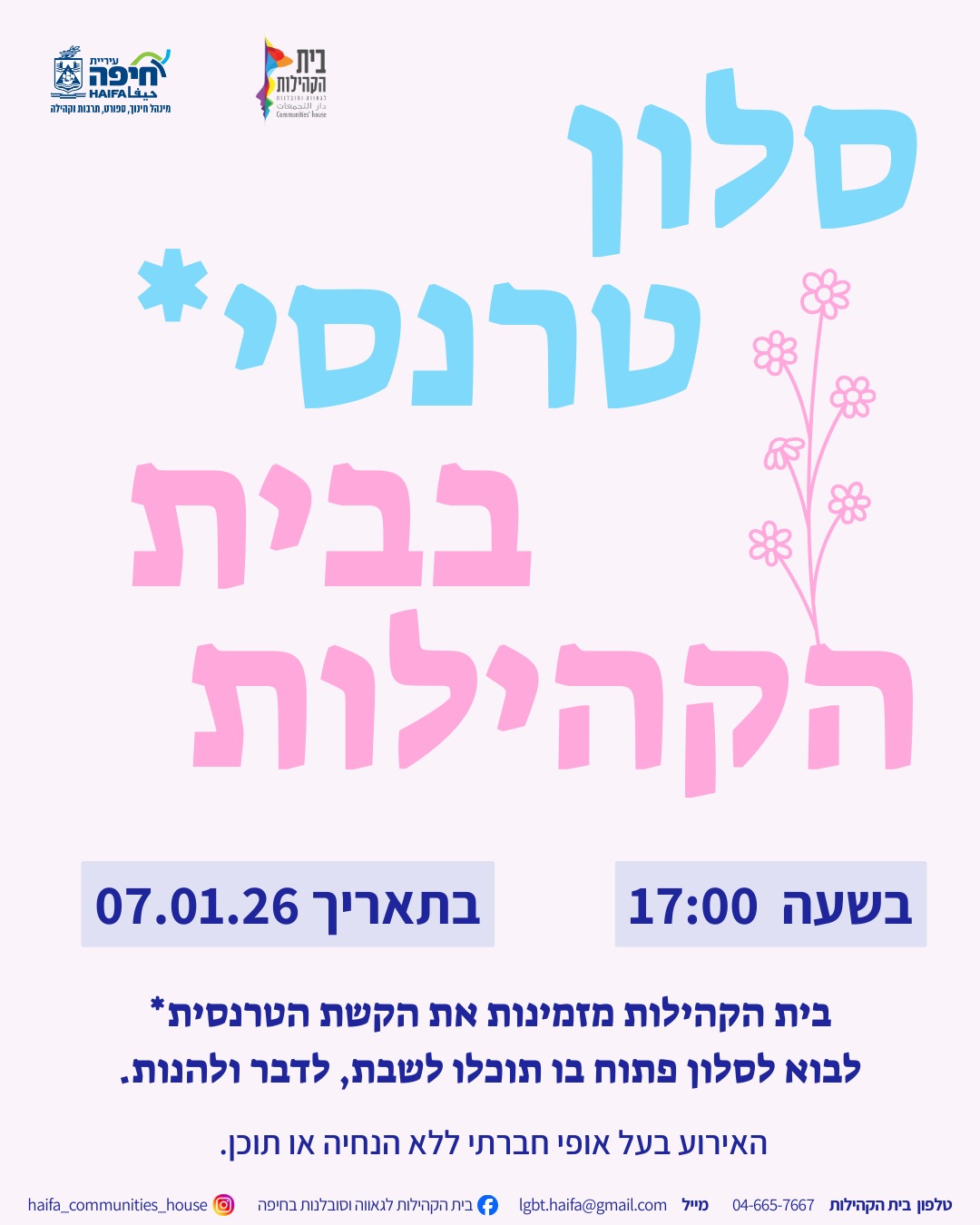🏳‍⚧ הסלון הטרנסי הפתוח בבית הקהילות!