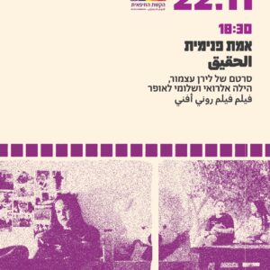 הקרנת הסרט "אמת פנימית" ושיחה עם היוצר שלומי לאופר – חיפההקשת החיפאית משתתפת בפסטיבל הקולנוע העממי בחיפה ומזמינה להקרנת הסרט "אמת פנימית" ... 22 נוב18:30 - 20:30 הבית הסגולשדרות המגינים 32, חיפה