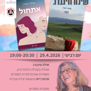 השקת ספריה של שילה ווינברג – חיפהמתרגשות ברמות להזמין אתכן לאירוע השקת ספריה של האחת והיחידה ... 29 אפר19:00 - 20:30 אשה לאשהארלוזורוב 118, חיפה